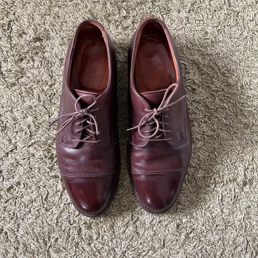 눈에 띄는 상처나 깊은 데미지는 없으나, 사용에 따른 착화감과 경년 변화는 있습니다. 상태는 사진으로 확인해 주세요. 가죽은 카프이며, 일반적인 사용에 따른 착화감은 있지만 눈에 띄는 상처나 깊은 크랙 없이 전반적으로 양호한 컨디션입니다.