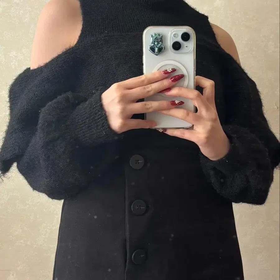 오프숄더 블랙 니트 스웨터