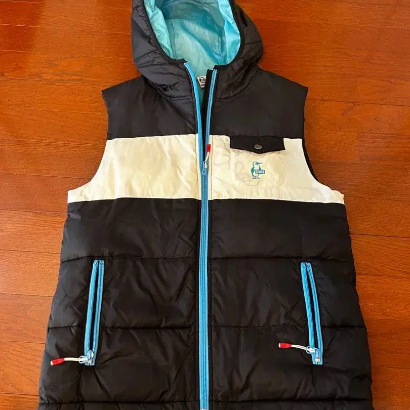 참스 후드 부착 다운 베스트 블랙/화이트/스카이블루