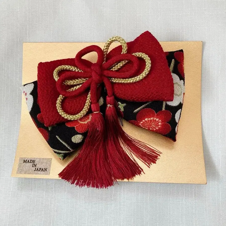 조각 끈 포함 리본 머리 장식 (일본제)과 꽃무늬 토트백 세트