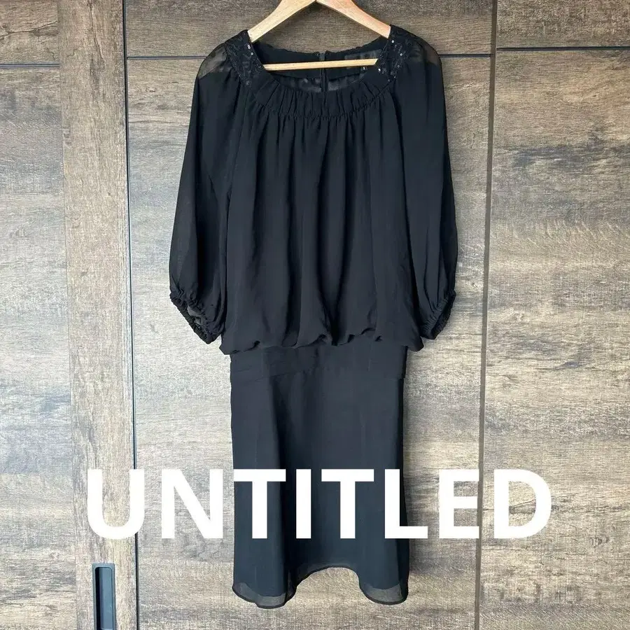 비즈 장식 블랙 긴팔 무릎 기장 원피스