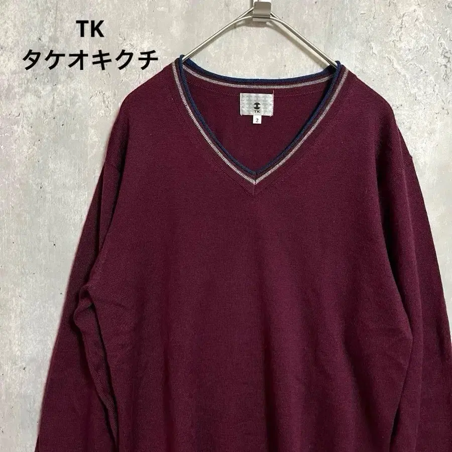 TK 다케오 키쿠치 V넥 울 니트 스웨터 깔끔 고급 캐주얼