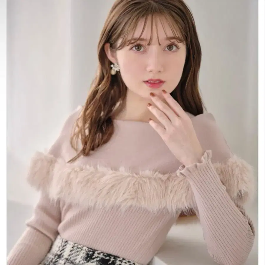 토코 클로젯 퍼 포함 케이프 라이크 소매 프릴 리브 니트 풀오버