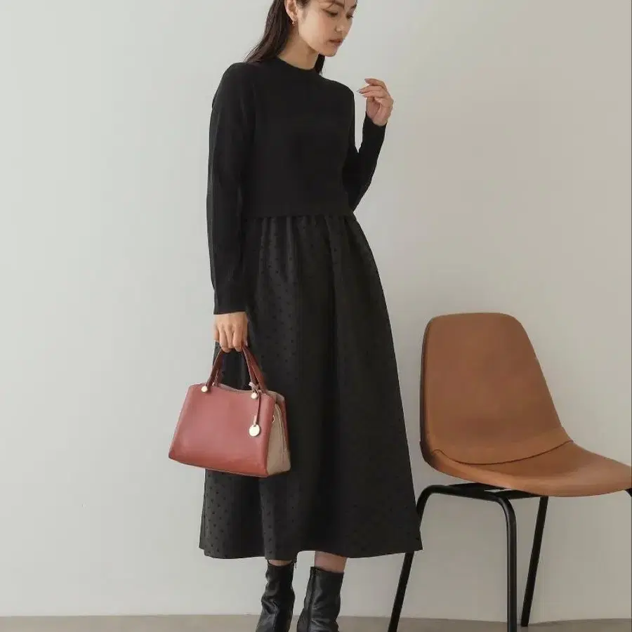 [ OPAQUE.CLIP ] 니트 x 도트 무늬 도킹 니트 원피스