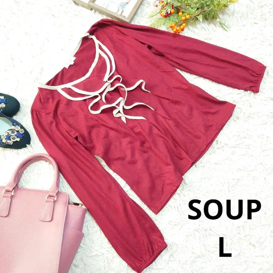 SOUP 니트 셔츠 (L) 다크 레드/화이트/바이컬러/프릴