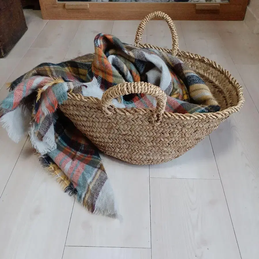 천연 소재 중형 바스켓백