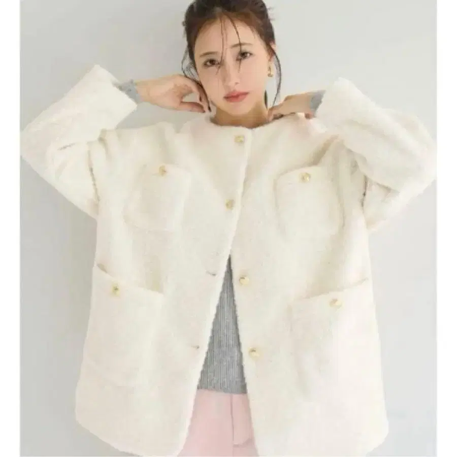 [ M 사이즈 ] coca 푸들 금장 버튼 노카라 코트 아이보리