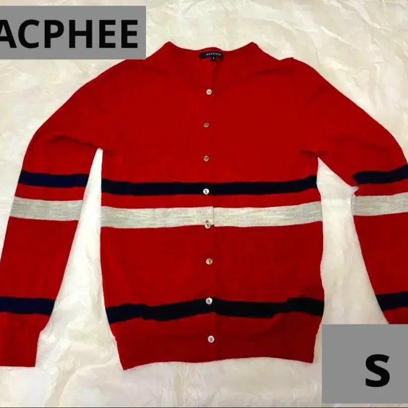 새상품급 MACPHEE 롤랜드 레드 스트라이프 가디건 S