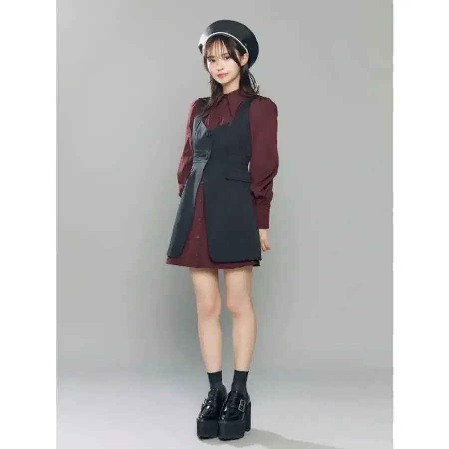 EATME 2WAY 레이어드 셔츠 원피스 보르도