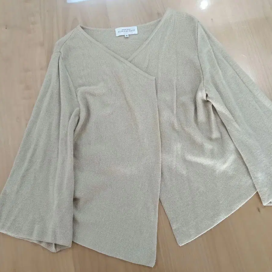 ALMA EN ROSE 골드 베이지 라메 니트 가디건 울
