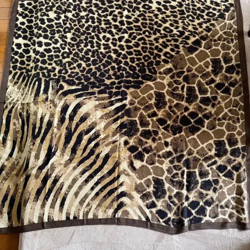 마니프리 애니멀 무늬 120 울 실크 스톨 스카프 브라운 갈색