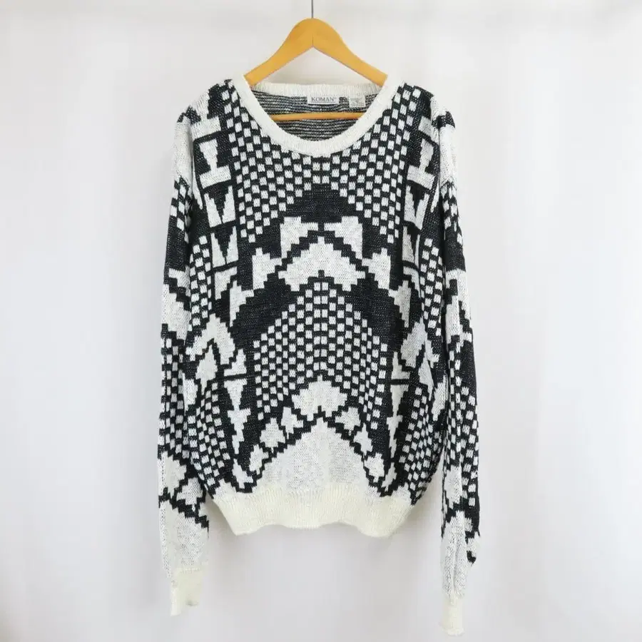 VINTAGE KOMAN 올 패턴 오버 사이즈 아크릴 니트 스웨터 XL
