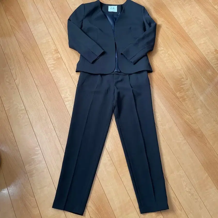 에버 네이비 노카라 자켓 테이퍼드 팬츠 수트 세트