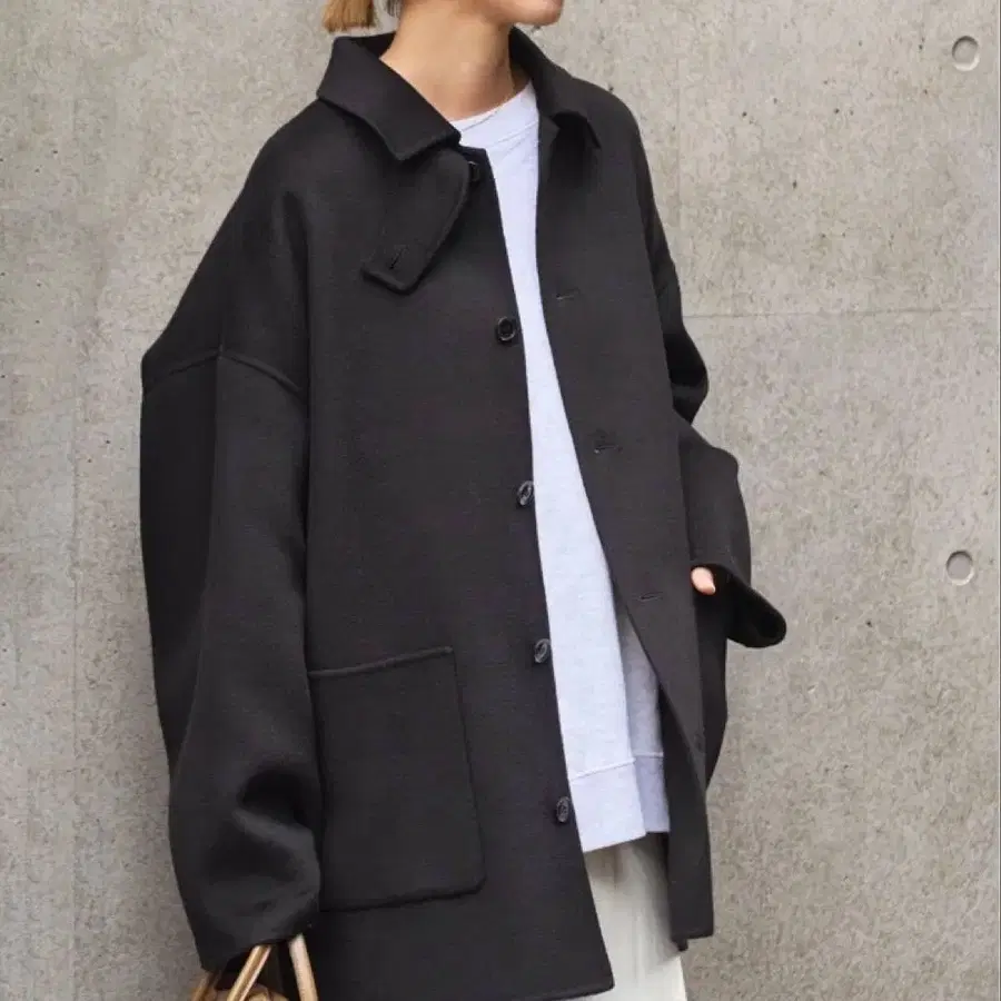 택 포함 새상품 FRAMeWORK 해밀턴 발라칼라 미들 코트 블랙 38
