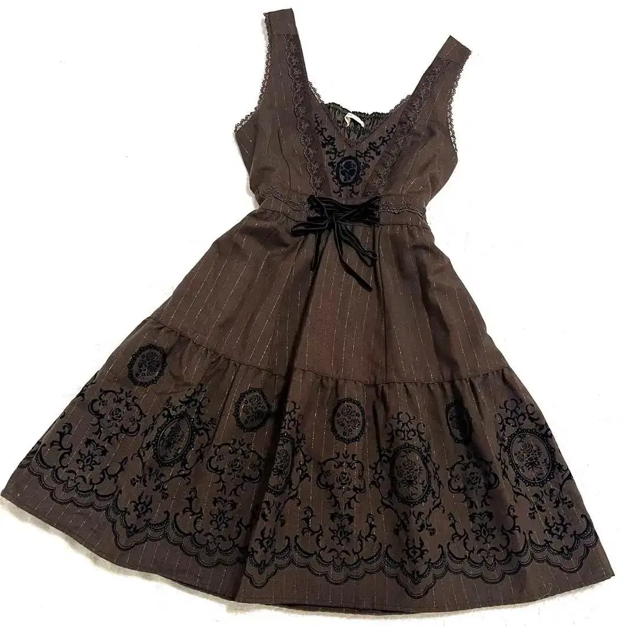 axes femme 엑시즈팜 벨로아 리본 레이스 자수 원피스 모리걸