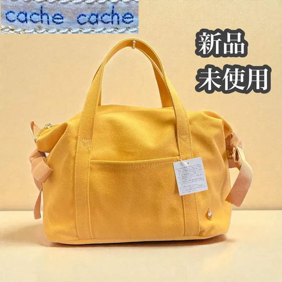 캐슈캐슈 미사용 새상품 캔버스 원단 백 머스타드색 리본