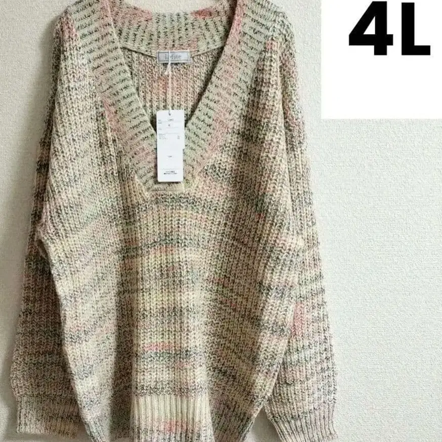 빅 사이즈 4L V넥 컬러 니트 튜닉