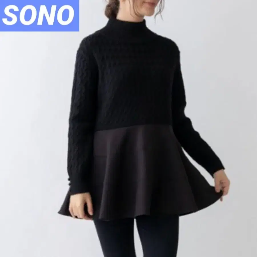 [ SONO ] 케이블 니트 플레어 하이 브리드 풀오버 블랙 소노