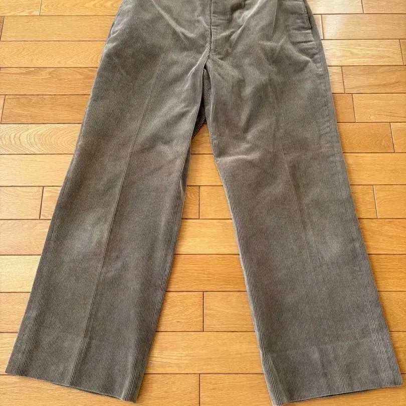 차분한 베이지 색상의 코듀로이 팬츠입니다.