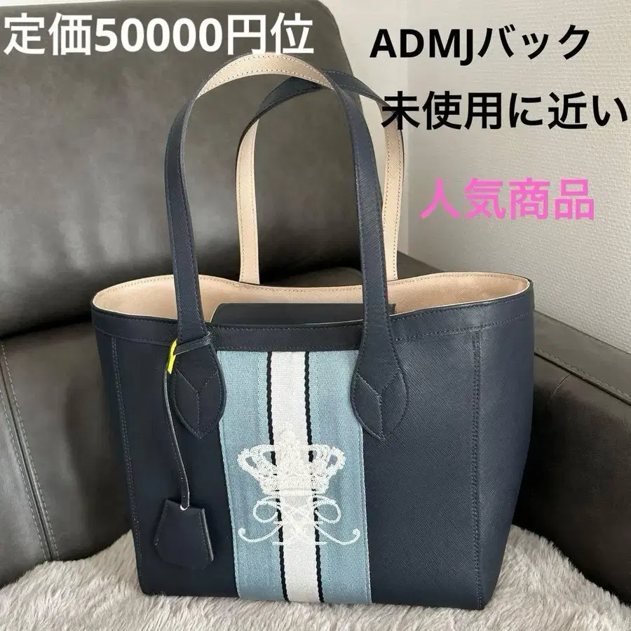 ADMJ 왕관 스팽글 자수 백 블루 거의 미사용