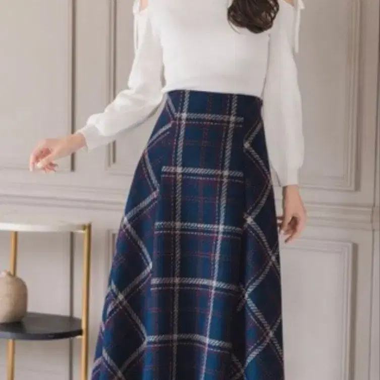 MISCHMASCH 네이비 계열 체크 플레어 스커트 S