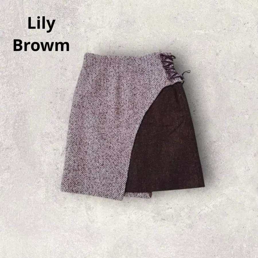 릴리 브라운 미니 스커트 이소재 절개 트위드 패턴 레이스업 자카드