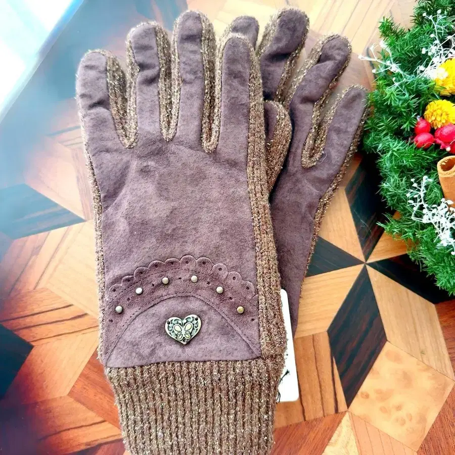 새상품 안나수이 ANNA SUI 스웨이드x니트 라메 모브색 장갑