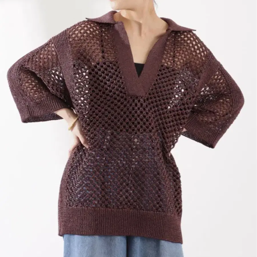 베르메이유 페예나 스트로우얀 와이드 메쉬 니트