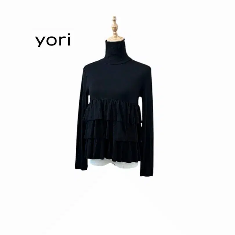 yori 요리 일본제 터틀넥 티어드 프릴 긴팔 니트 블랙