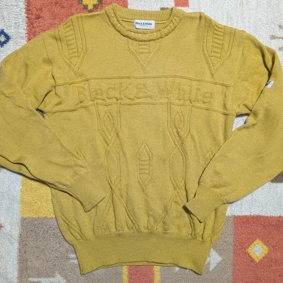 블랙&화이트 머스타드 색상 편직 디자인 스웨터 L