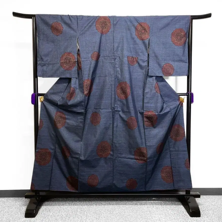 코몬 오시마 명주 꽃 무늬 네이비 기모노 072t