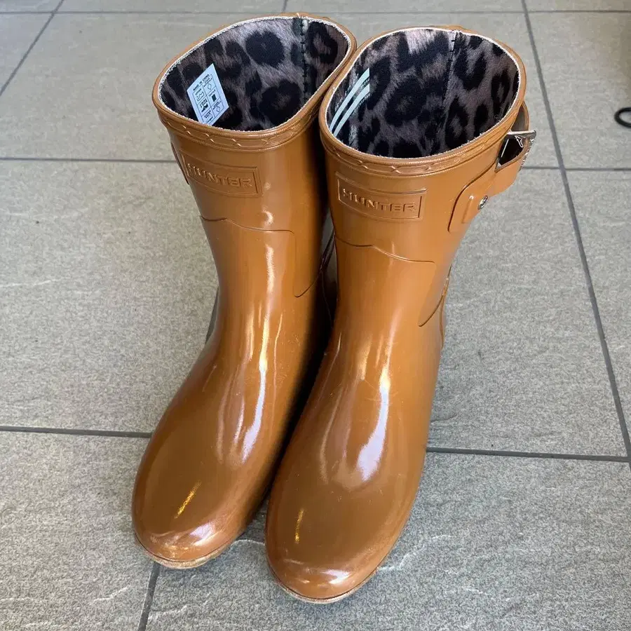 Hunter 브라운 장화 36 레인부츠 레오파드