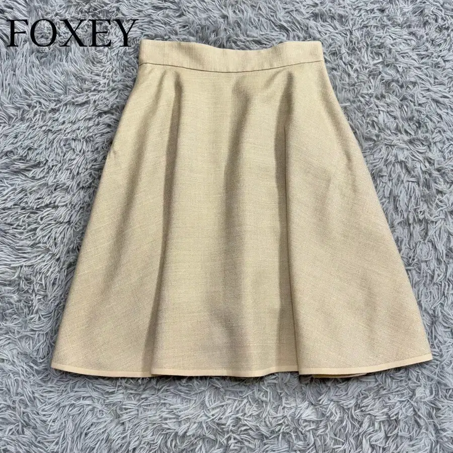 미사용급 7.5만 폭시 울 실크 플레어 스커트 무릎 기장 베이지