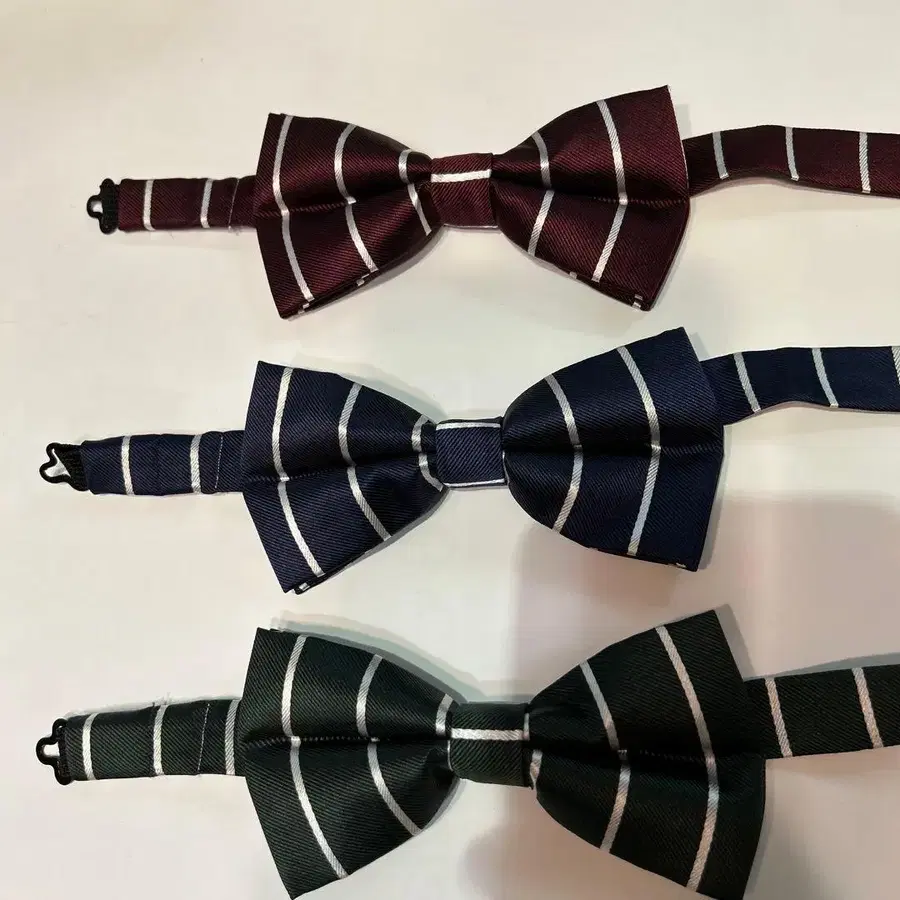 크리스마스용 스트라이프 나비 넥타이 세트 (와인 레드, 네이비, 그린)