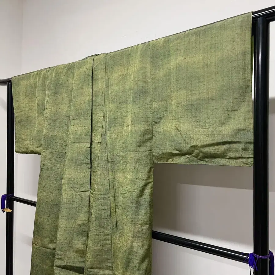 코몬 레드 세로 줄무늬 그라데이션 카키 그린 말차색 안감 기모노 012t