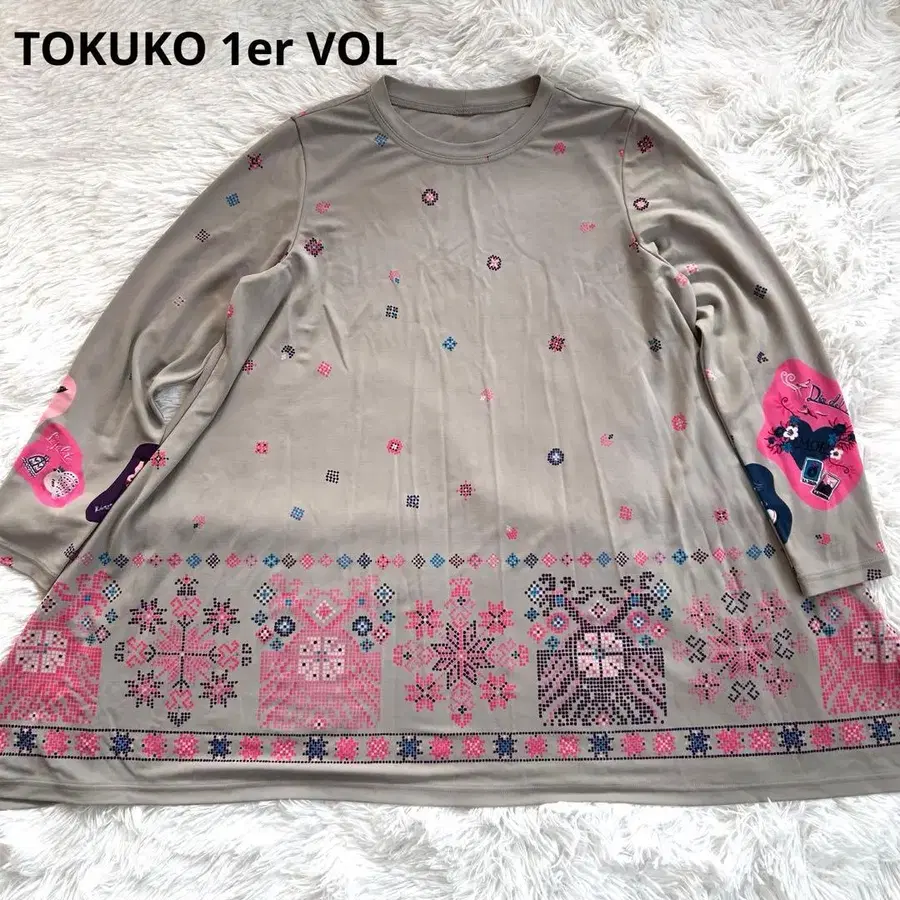 토쿠코 프리미어볼 그레이 기하학 꽃무늬 긴팔 튜닉 티셔츠 새상품급
