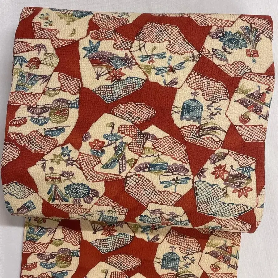나고야 오비 구름 무늬 잠자리 단풍 부채 소나무 기모노 091t