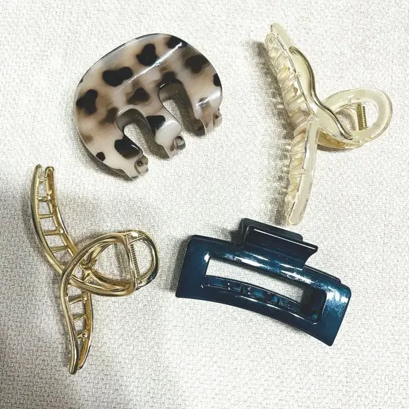 Ane Mone 아네모네 헤어 클립 네 개 세트 골드 네이비 표범 무늬