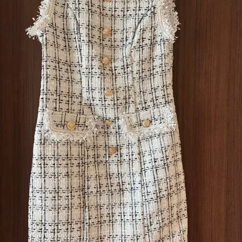 트위드 체크 무늬 슬리브리스 드레스