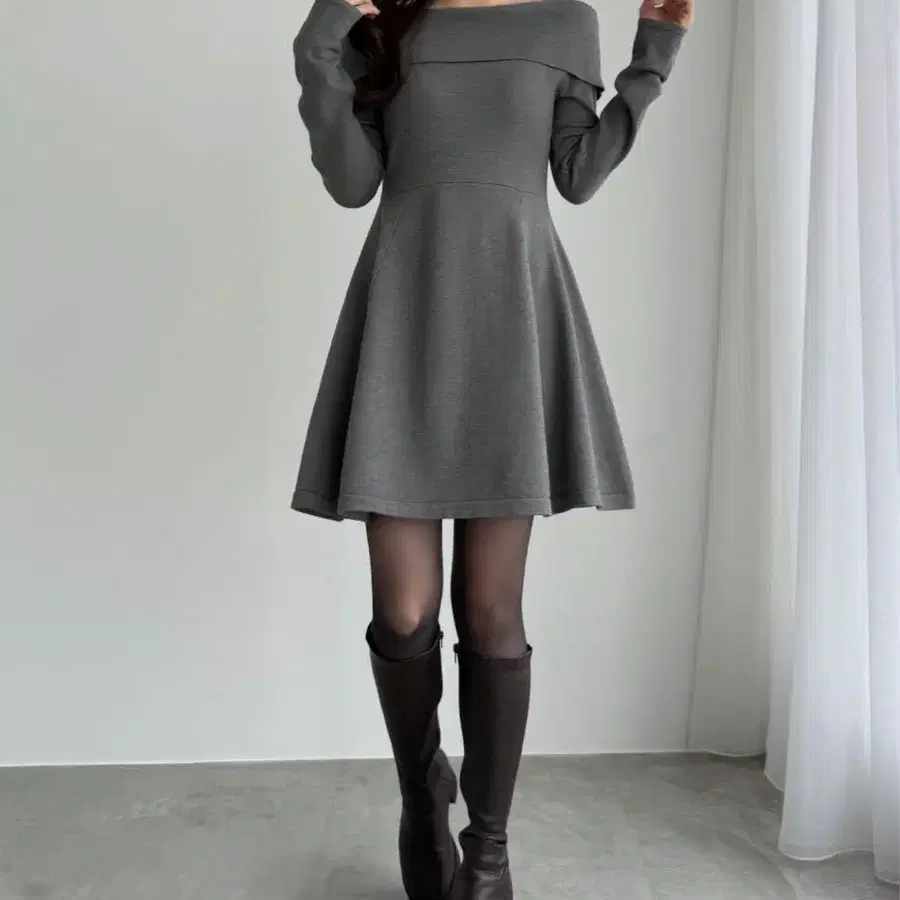 CENEA 오프숄더풍 스퀘어넥 미니 니트 원피스 MT 사이즈 차콜