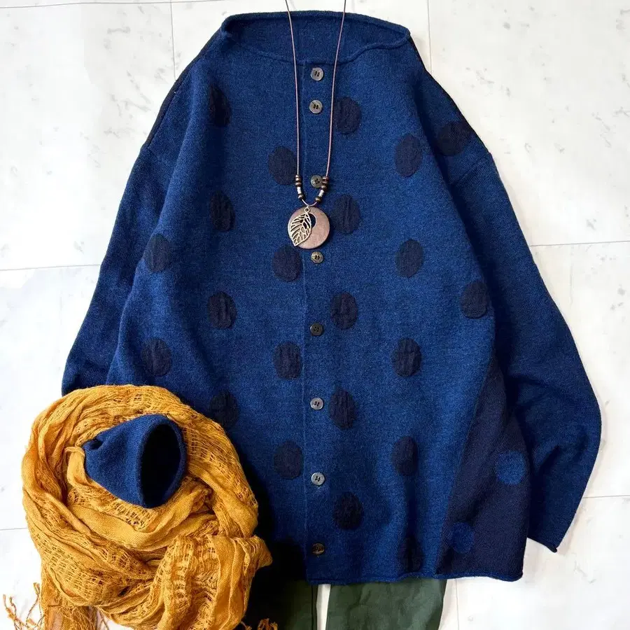 네이비 색상의 표면감 있는 도트 무늬가 떠올라