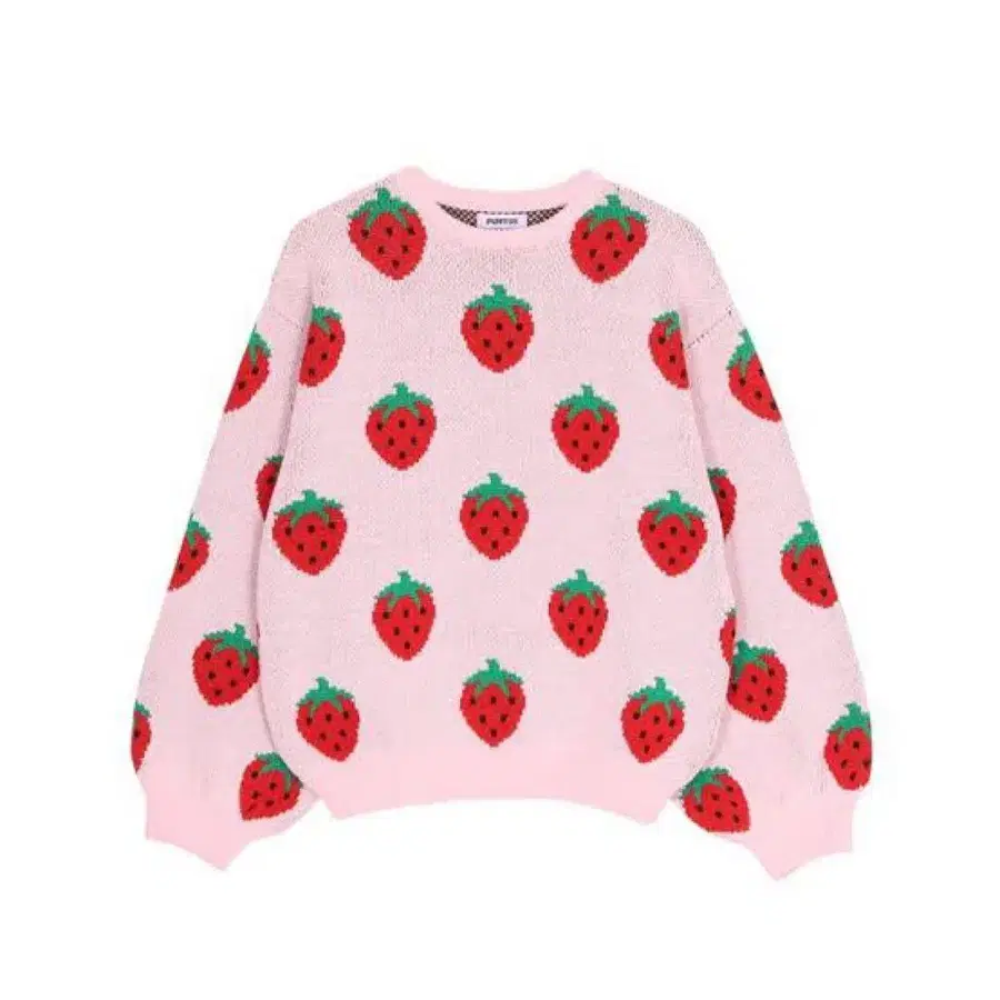 [ 사이즈 2 ] PUNYUS 후드 총무늬 니트 딸기