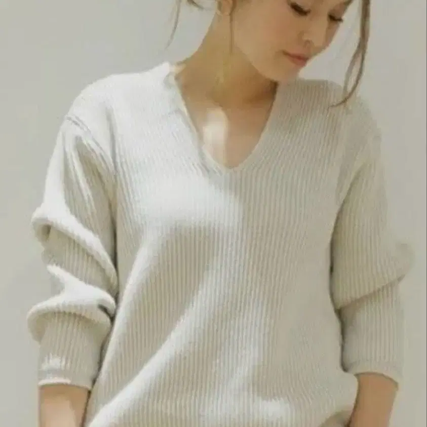 루즈비프 V넥 숏 니트 아이보리 프리 사이즈
