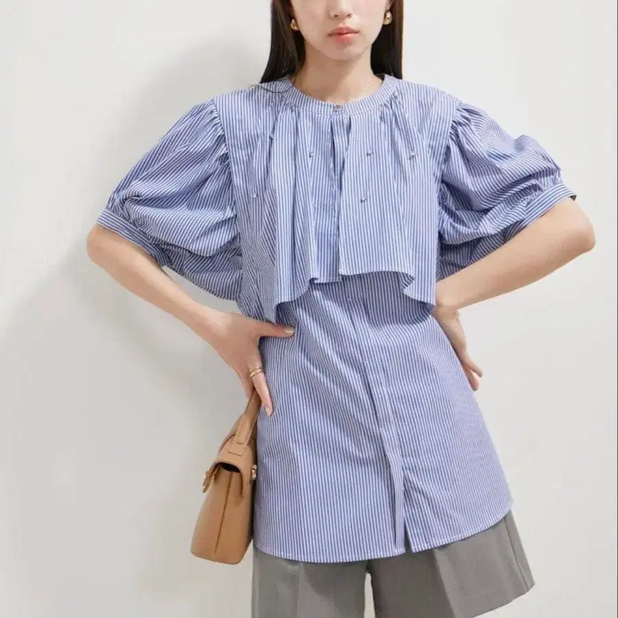 새상품급 VIS 스트라이프 셔츠 블라우스 반팔 프릴 큐빅 비쥬