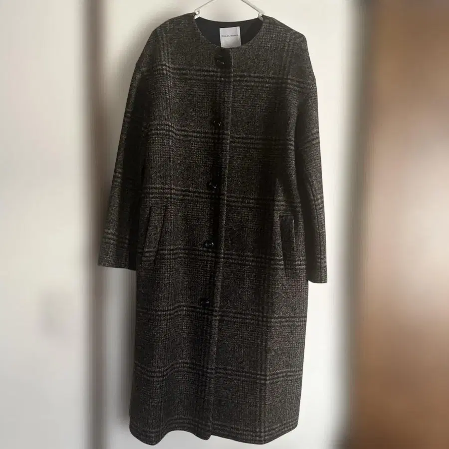 휴먼 우먼 울 혼방 체크 무늬 롱 코트