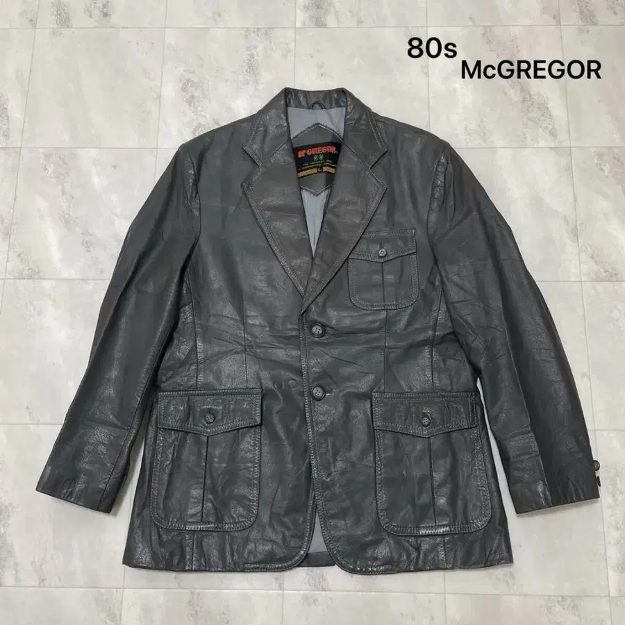 80s McGREGOR 맥그리거 맥레거 테일러드 자켓 해마 택 가죽 자켓 80년대 빈티지 그레이 사이즈 L玉na1586