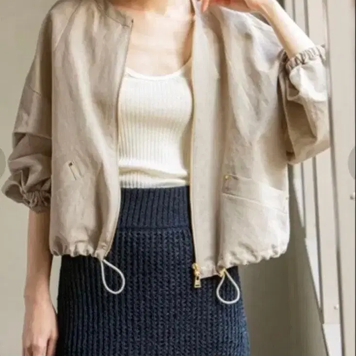 드라이 터치의 질감과 코디하기 쉬운 기장의 숏 블루종이 등장! 린넨 특유의 여름다운 자연스러운 질감에 둥근 실루엣으로 여성스러운 에센스를 더한 크루넥 블루종. 데님 팬츠 느낌의 원단에 레인보우 색감의 깊이 있는 컬러링을 더하면 평소 스타일에 고급스러움을 더해줍니다. 목둘레는 깔끔하게, 밑단에는 풍성한 볼륨으로 올해 유행하는 스타일링 밸런스를 맞춰주는 아이템입니다. MA-1을 심플하게 리모델한 스타일에 부속 부품을 골드로 통일하면 스포티하지 않은 여성스러운 스타일에도 최적입니다. 밑단 둘레는 스트링 코드를 통해 볼륨 조절이 가능하여 스타일링이나 하의와의 밸런스에 따라 어레인지할 수 있습니다. 봄철 방한복부터 초여름에는 자외선 및 냉방병 예방까지 다양한 장면에 활약할 것입니다.