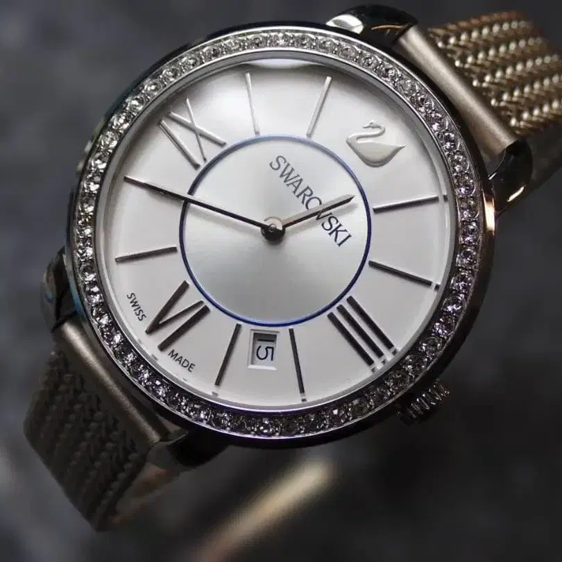 SWAROVSKI 메탈 마그넷 메쉬 벨트 2침+DATE 새상품급 작동