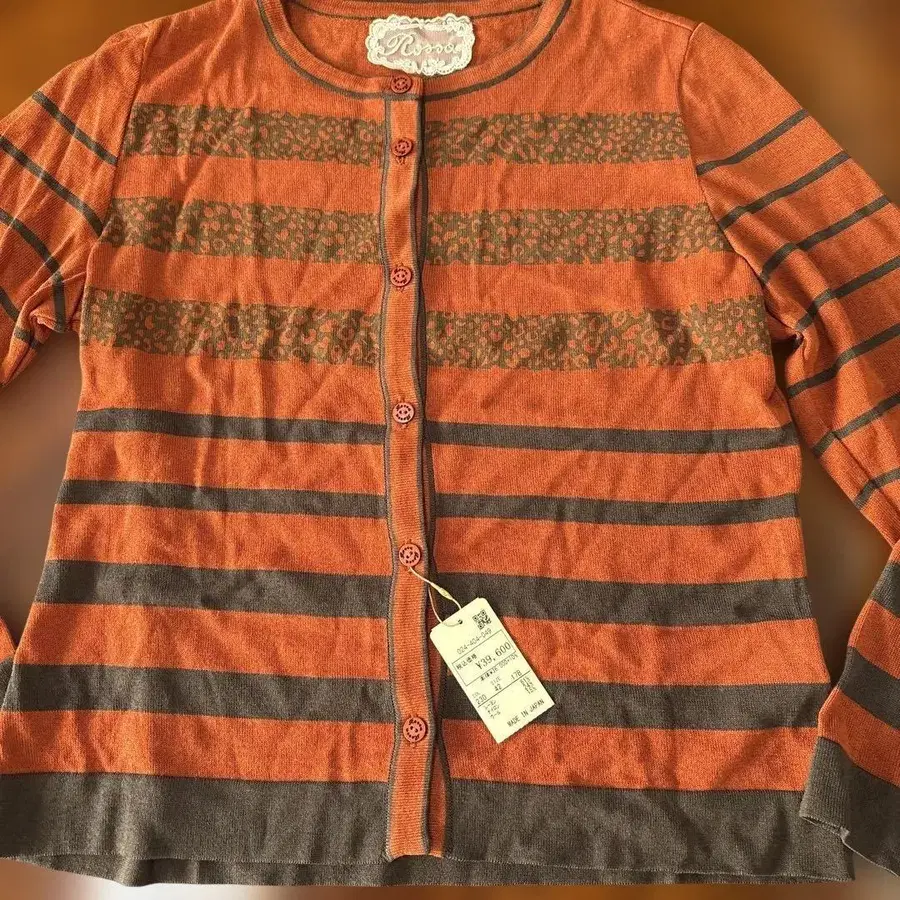오렌지와 벽돌색 밤색 스트라이프 가디건