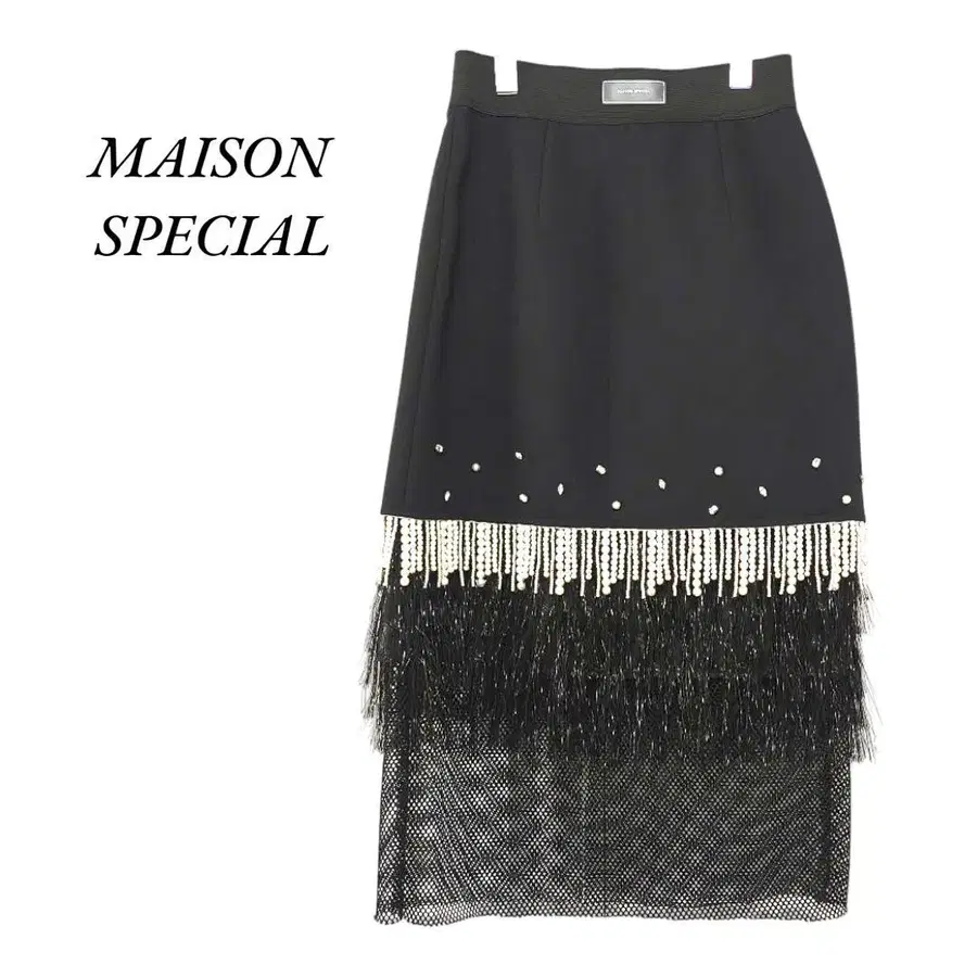펄과 크리스탈을 조합하여 배치한, 화려한 타이트 스커트.
